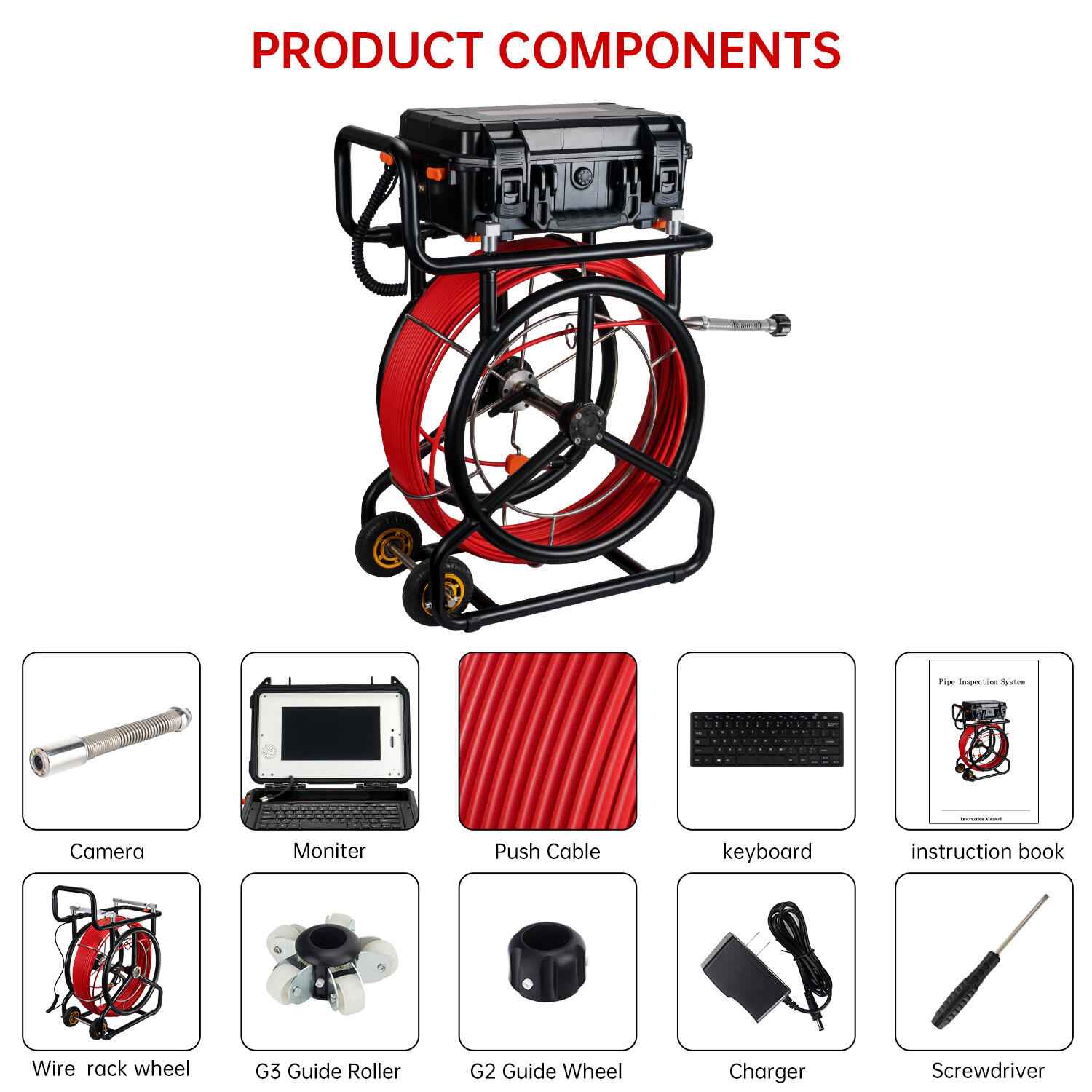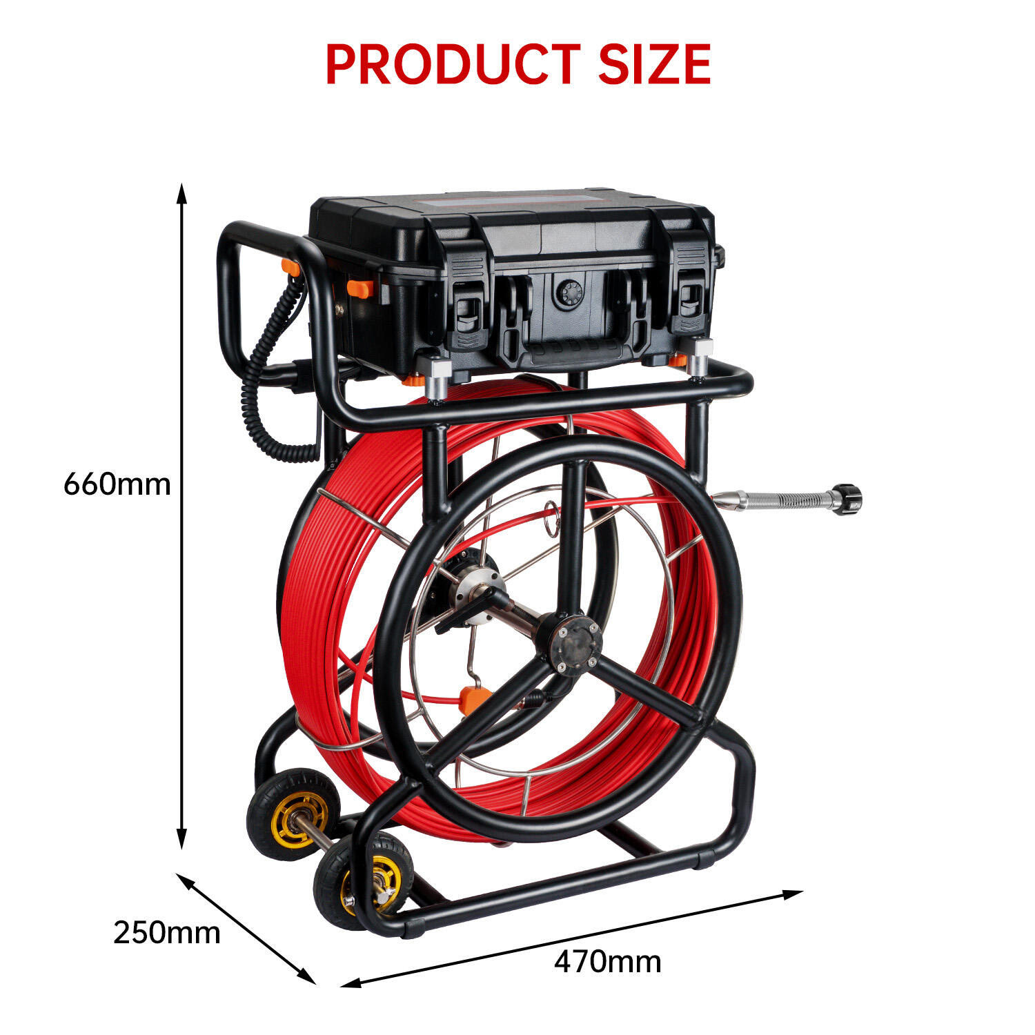 - Built-in 512Hz transmitter sonde (compatible with all major locators: Ridgid, Vivax, Leica, etc.)