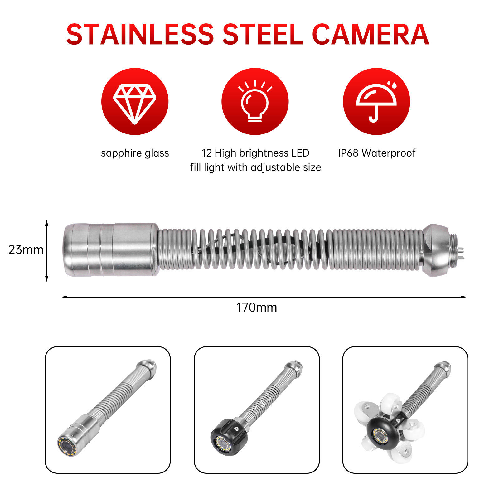 23mm self-leveling, 1080P CMOS, sapphire lens, built-in 512Hz sonde |